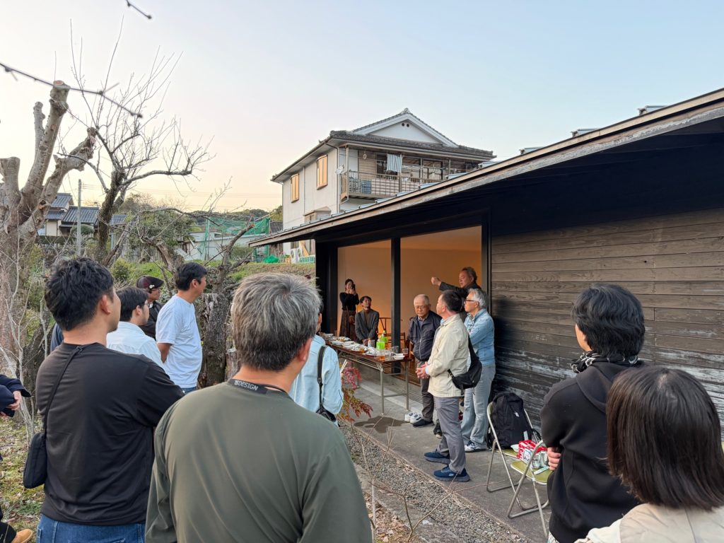 「南の家」の大開口を開放し、内と外がゆるやかにつながる空間の中で、あちこちに自然と会話の輪が生まれていました。外からその様子を眺めていると、建物が器となり、人が集い、語り合う——そんな風景の尊さをあらためて感じました。